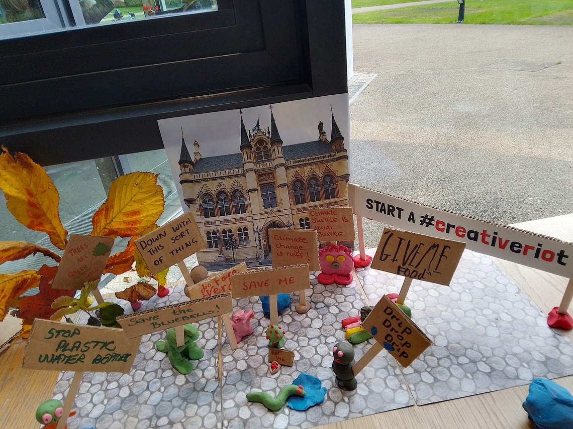 We also hosted a bonus Fun Palaces Café as part of the Fun Palaces Weekend of Celebration. We welcomed Trish from Clachworks, who shared her expertise in crocheting and embroidery. Lucy, our esteemed Head of Engagement, was also on hand to offer a lesson in pom-pom making, while our #creativeriots table welcomed folk to make their own plasticine characters and placards to demonstrate outside the 'town hall'.
