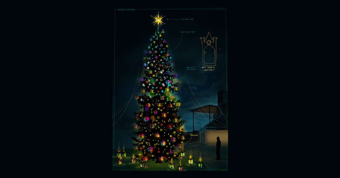 Eden Court’s building will be looking its festive best this winter, primarily thanks to the spectacle of a stunning 30-foot Norwegian spruce that will grace the front of our iconic building. Find out more about the tree, designed by Inverness-born leading Theatre Designer Kenneth MacLeod.