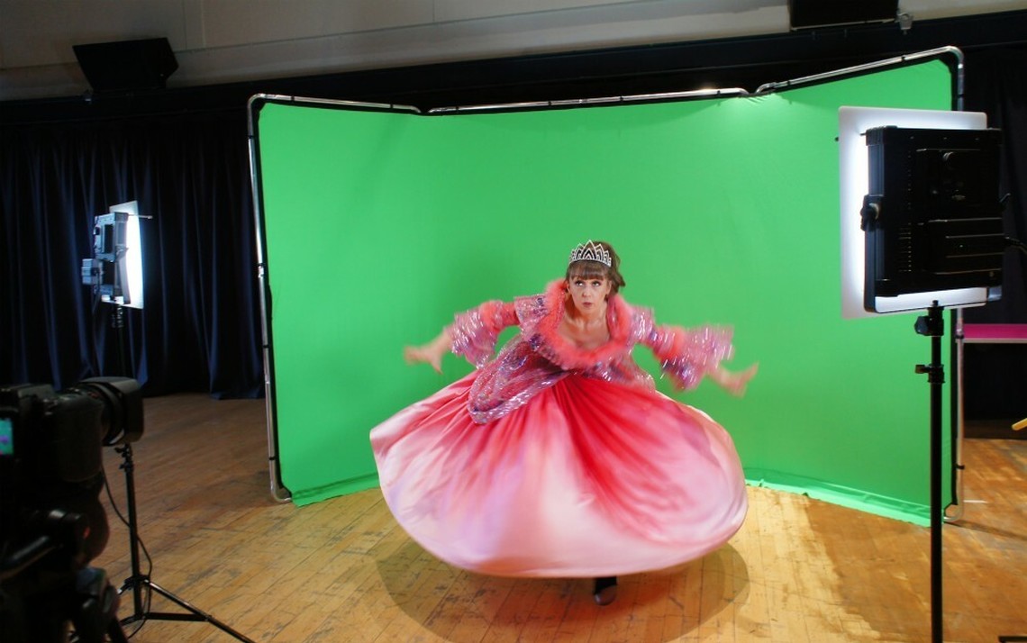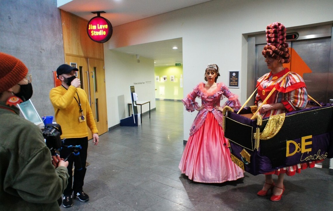 As the cast arrive to start rehearsals, Eden Court’s in-house filmmaking team, Maili Fraser and Graeme Roger, kept the Dame and Fairy busy with a day of green screen filming, some magical effects and a dashing, bespoke D&E Coaches costume!