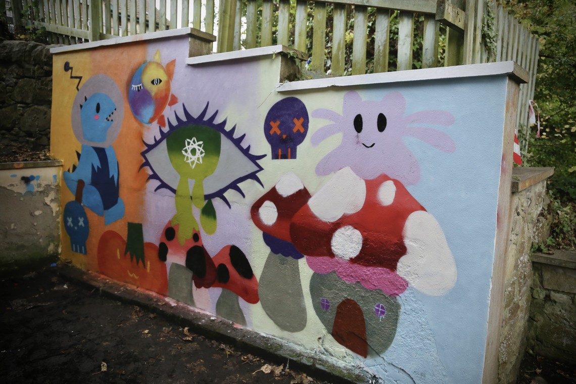 The aim was to create an eye-catching piece of wall-art for just outside the Hub but arguably the more important aim was for local young people to have fun creating it!